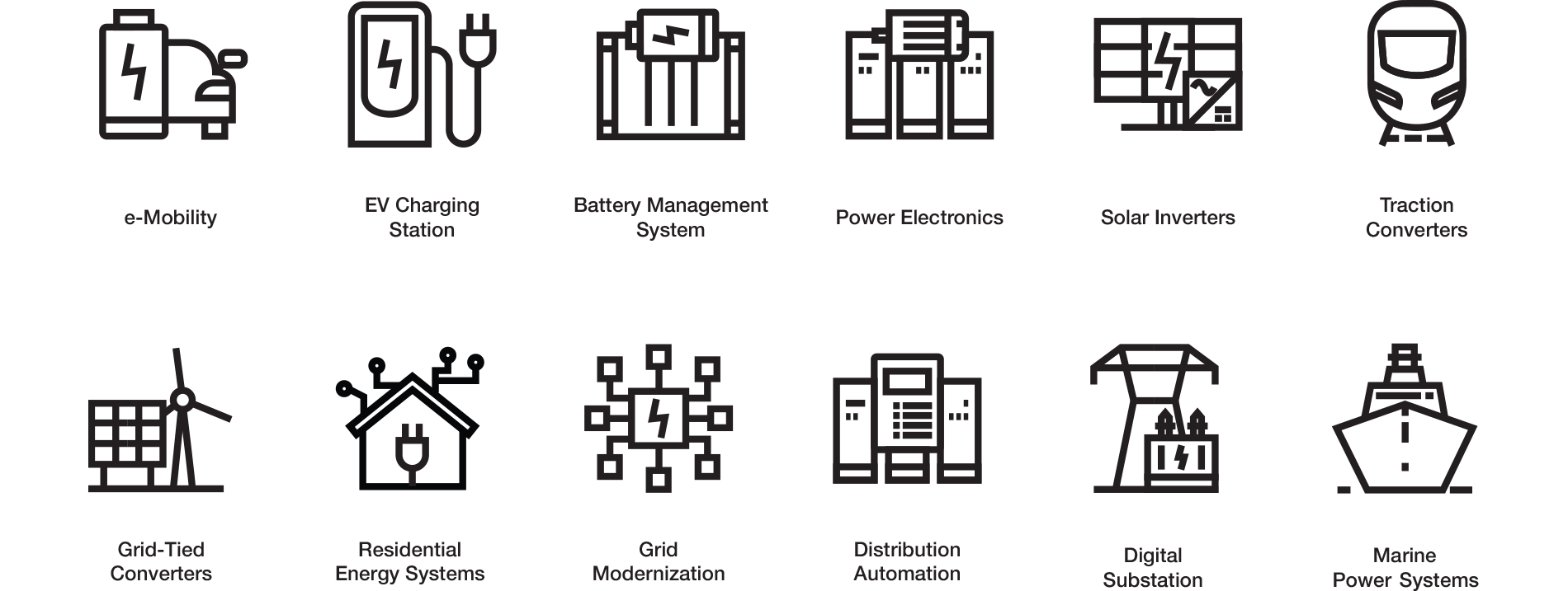 Typhoon HIL provides solutions across all power electronic and industrial applications, such as motor drives, battery converters, solar inverters, active filters, and traction converters to name a few.
